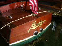 Shortly after World War II, a gentleman by the name of H. Tracy Balcom enlisted Glen E. Furness, the naval architect at Hutchinson Boat Works in Alexandria Bay, NY, to design a boat for him. It was to be a custom power boat for Balcom to use for fishing and recreation in the Thousand Islands area of the St. Lawrence. Furness went to work and drew up plans for a 25-ft. 6-in. utility with a 7-ft. 8-in. beam, double-planked bottom and lap strake sides that blended beautifully into a full barrel-stern – an extremely rare combination. An ice-box and several lockers were provided for stowage of fish and fishing gear, and an unusual convertible canvas top on wood bows was designed to collapse forward into a concealed compartment located just behind the windshield. Power was provided by a 6-125 Gray Marine engine. The design was designated #142, and as far as is known, only one boat was ever built from that design. That build was executed in 1949 by Grew Boats, Ltd. of Pentanguishene, ONT, Canada as hull #3412. The boat’s name, Royal Amber, was found during restoration, barely visible on the transom. The boat spent the next 25 years in the Thousand Islands and during that time it was regularly maintained by Hutchinson. In 1974, the boat was acquired by a Paul Schumacher of Rochester, NY with the intention of restoring it. He used the boat very little, and never got around to its restoration. Three years later he put it in storage at Sill’s Marina on Sodus Bay, and in 1981, he gave it to FLC member Stew Sill, owner of the marina, as compensation for storage! In 1998, Stew sold the marina, built himself a shop at his home on the west side of the bay, moved the boat from storage into the shop and undertook its restoration as a major retirement project. Stew’s objectives were to restore the boat to the highest standards while retaining originality, but using modern technologies for increased reliability, safety and performance. That project began in 2000, and over the next six years he worked steadily on the boat doing a first- class, bottom-up restoration. The keel, ten web frames and 35 intermediate frames were replaced -- all in white oak. A new3M 5200 bottom was installed, but surprisingly, the ½” mahogany topsides were still in excellent condition. They were saved and refastened with silicon bronze rivets. Decks are all original mahogany and were reinstalled with 3M 5200 seams. Through the years, the boat retained all of its original hardware (most of which was replated), including an Iva-Lite and a deck- mounted Perko siren. The original Stewart- Warner instrument panel was retained, but all new S-W “wing” gauges were installed. In a nod to practicality and reliability over authenticity, the boat’s Gray Marine engine was replaced with a new 300hp Crusader which Stew found on e-Bay at a bargain price. The power train was fleshed out with 1:1 Velvet Drive transmission, and new stainless shaft, prop and strut bearing. And as part of the concession to modern power, the boat’s original floor-mounted shift lever was replaced with a Morse single-lever control. The new engine also required a twelve- volt electrical system including bilge blower, bilge pump and new wiring throughout. Research into the source of the name Royal Amber has uncovered the fact that H. Tracy Balcom, Jr, the original owner, was President and CEO of the Wiedemann Brewery, in Newport, KY from 1938 until it merged in 1967 with Heileman Brewery. For many years before and during the time that Mr. Balcom was CEO, Wiedemann was prominent in the Newport community and their flagship beer was named “Royal Amber.” To round out the restoration, new “tuck & roll” upholstery was installed and battleship linoleum covered the cockpit soles. The result was “A sweet running boat,” according to Stew. “That new Crusader really made a perfect engine for this boat!” Stew now had himself what he called the Ultimate Picnic Boat for casual use and pleasant afternoons on Sodus Bay and Lake Ontario. But that’s not the end of the story. Enter Ed Leroux! For 30 years, Ed Leroux had been active in boating, mostly sailing. Much of that time was spent on Sodus Bay, but through reassignments and relocations with Xerox, he sailed in San Francisco, Southern California and Long Island Sound. As children and grandchildren became sailors (or at least enjoyed the water), it became clear that he and his wife, Anne, needed a water-side cottage to handle the crew. In 1996, they bought their summer place on Le Roy Island which gave them the opportunity to have more space for the kids than just the sailboat at Sodus Bay Yacht Club where they had been and still are members. It also gave Ed a place for smaller wooden boats -- an interest that he had held for some time. His first wooden boat was (and still is) a 12-ft. Penn Yan Swift replica built in 1997 by Victory Boats of Victory, NY. “As a kid, it was the first boat I remember my dad owning on the St. Lawrence.” Ed’s second woode