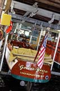 “We Three” has been a fixture on Long Lake in the Adirondacks since she was delivered to the original owner, WA Raney in April 1946. After the passing of Mr. Raney, his daughter sold the Gar Wood to Dr. and Mrs. Shelly in April 1996 and she remains on Long Lake to this day. She won numerous boat shows from South Carolina and North Carolina. The Clayton Boat show, is where she won Best preserved, Best Gar Wood and a few “Best of show”. This Gar Wood is about as original as any boat one can find other than some of the upholstery which was really beginning to show some wear. All the wood on her, including her bottom, is original. One might wonder when looking at her due to the lighter “sapwood” which is found on her forward port side, but that is exactly how she came from the factory. She was built to go to the 1946 New York Boat Show, but that show, due to the war, never became a reality and she was then taken to Hearn’s Dept. Store as a boat to use for sales. She was the only Gar Wood of her kind built and primarily for that show. Mr. Ranney had taken his daughter to Hearns to purchase clothing and saw this particular boat, inquired about purchasing one like it and was told “he should consider purchasing this boat due to rumors that the company would or might be closing in the near future. He purchased her on the spot. Mr. Raney purchased the boat right off the floor from the Dept. Store in January of 1946.