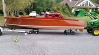 Starting with a boat in great condition and purchased new in Cincinnati in 1959, it had just over 200 hours when I began the build. I completely stripped this 18' inboard ski boat down inside and out and performed a very high quality restoration with many upgrades over stock. I used all the same paint, sealers, caulk, and varnish products used by Chris Craft when the boat was built. I have all the original paperwork from when the boat was purchased new. I also have all the restoration receipts. I installed all new marine grade wiring and professionally built and upgraded the small block Chevy engine (283). It now has a roller cam, electronic ignition, alternator, new and better Edelbrock 4 barrel carburetor and base plate, and many other upgrades to make the engine perform better with greater reliability over stock. All new interior by the Upholstry Shop in Jamestown, NY. Trailer was stripped, upgraded, and painted with Raptor Guard truck bed liner, and I added custom tires and wheels. I have all material receipts exceeding the asking price, and this does not include my 12 months of labor to perform this build. The restoration on the gauges alone was $2,000. I also built the dash from mahogany and installed a high end stereo system. This is a serious boat for serious inquiries only. I also have pictures from when I purchased the boat and all the progress photos throughout the entire build. I have approximately $35,000 invested with the purchase of the boat, restoration, and trailer upgrade. This does not include any of my labor or paid labor I used during the restoration. I also have the lift I built to restore the boat. A full price offer will include the lift which I have about $1500 in. The boat has only been in the water about a dozen times since restored in 2018. I built it as a show piece, and it has not been in the water in 3 seasons. It's time for someone else to enjoy it.