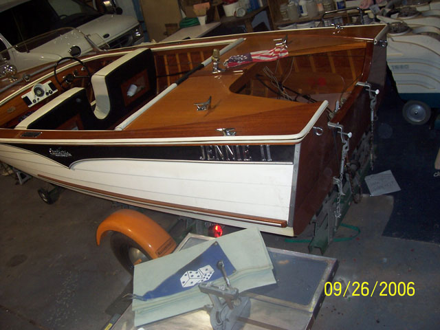 It is the most deluxe model made at Cruisers at that time. She came standard with the most "stuff." not the largest boat they made, but she had the most styling and standard hardware. Not restored, she in original condition! Un-scratched Mahogany decking. Very clean, my late uncle last registered the trailer in 1961, Always garage stored. This is a complete package Boat, Trailer, Motor and extras. The trailer is a Mastercraft of MiddleTown, Conn. Model # CR8-800 The motor is an outboard Mercury 1958 “Mark 58” 45 hp, I have original sales brochures for all 3 and the original bill of sale