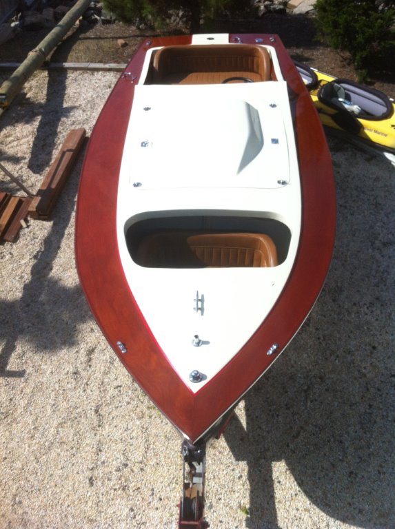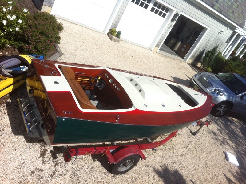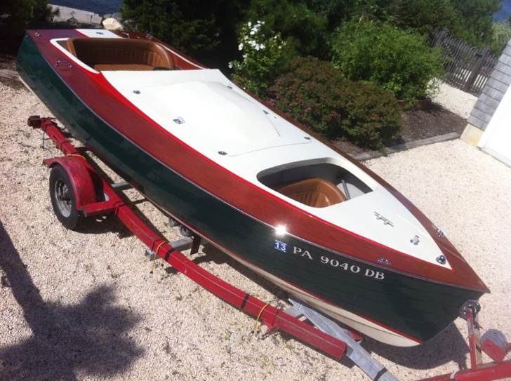 A 16 Foot Jersey Speed Skiff powered by a 327 Chevy with a four barrel and Edelbrock heads. Beautifully Restored, No expense spared Over $25,000 invested. Vintage style gauges, mahogany laminated dash and transom. Set up more for pleasure than racing. The boat has only been in the water twice since restoration and comes with an excellent single axle trailer rewired and a brand new sunbrella cover.