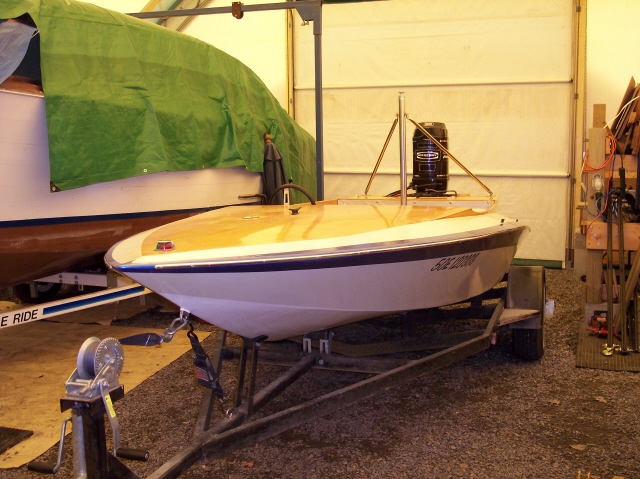 "Hot Shoe" is a Glen L Stilleto that was built around 1985. She is in excellent condition and fun to drive. Powered by a 6cyl 115hp Mercury "Tower of Power". Complete with tilt/trim, a stainless steel ski tow bar, built in fuel tank, and a custom trailer. Ready to go and needs nothing!