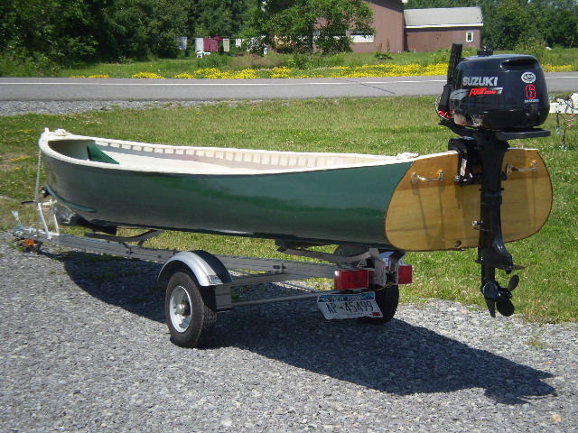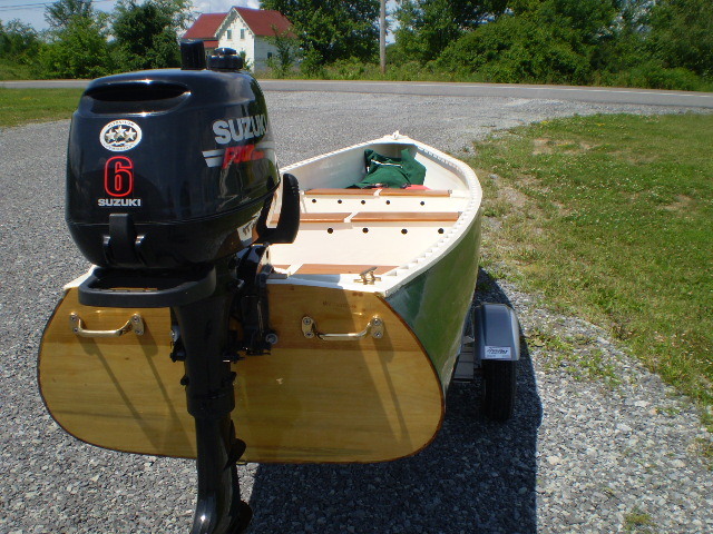 This is a custom built outboard boat taken made from plans in Wooden Boat magazine. It's construction is cedar and spruce with a fiberglass overlay. Comes with a full cover and trailer. Engine has a remote fuel tank. Always stored inside. Beautiful craftsmanship.