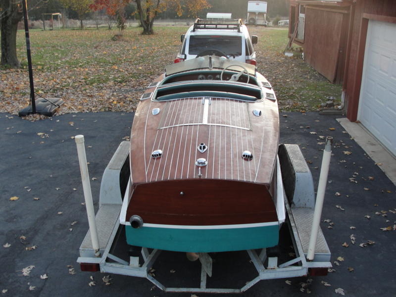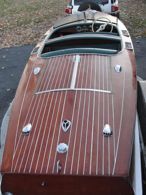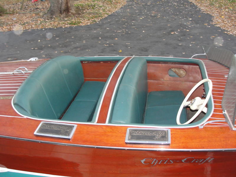 Boat is all original wood. All the interior hull bracing was redone or tightened throughout the last couple years. Original engine that was rebuilt a few years ago, again according to the invoices I have in the file. I just had it out last weekend and it runs like new. I believe the outside is in good condition. I don’t think it needs new varnish, and the bottom was just painted as well. The interior could use some updating. Like the seats are in good shape (no tears or anything like that), but are faded a bit. And the front instrument panel could use some updating (refinishing)–they work but don’t look new). I have young kids, so it’s just not a practical boat for us, and I just don’t have the time these days to put into updating the interior. I simply do not have the time to work on the boat.