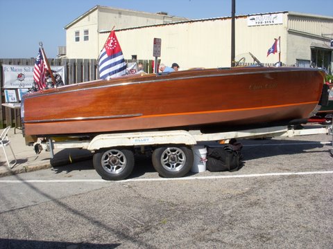 Fresh out of a bottom up restoration which includes 5200 bottom, replacing all frame work, entire boat was faired and sanded before 16 coats of varnish, Gauges rebuilt by Mark Clawson, interior redone to original specs,Banjo wheel restored,all chrome redone, Engine in boat now is a KLC that has been fully rebuilt. The original K engine comes with the boat, is also fully rebuilt on a custom mahogany stand. Comes with original owners manual, paddle and gas stick. Trailer was fully restored to new condition.