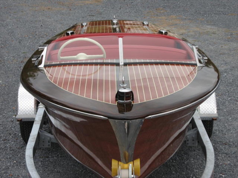 The current owners found this boat abandoned at a gas station in Northwest Virginia several years ago. The boat had a fire in the engine compartment and sunk at one time years before. After 2 years of extensive work, the boat was brought back to excellent condition. Much of the exterior wood was saved but most interior wood was replaced during the restoration. It was returned to original, showroom condition and is absolutely beautiful! It has a 2007 Shoreline trailer and a custom made heavy duty canvas cover.