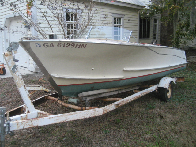 1954 McVey inboard utility, powered by a 6 cylinder Gray Marine. Needs some restoration. Complete with all original hardware, etc. Great project. Comes with a single axle trailer.