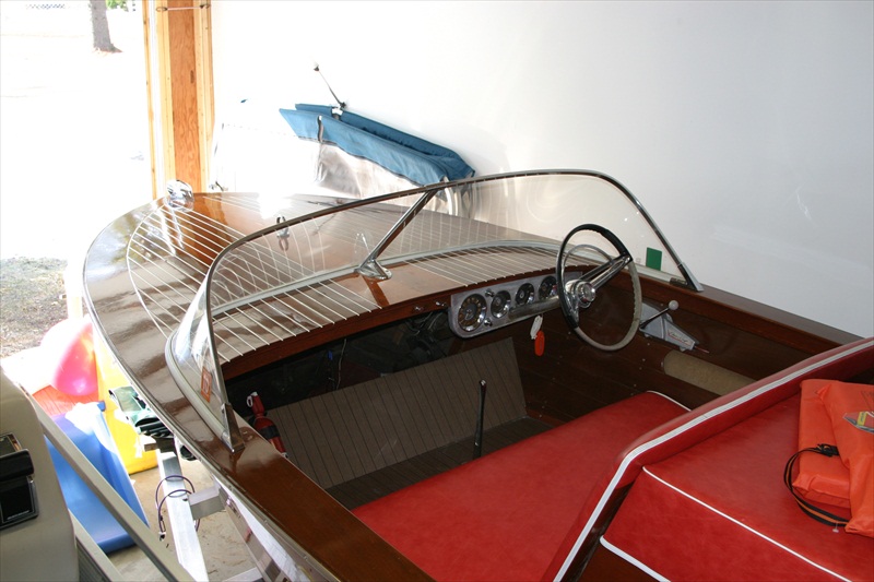 Here's a gorgeous hot little ski boat in very excellent condition. Recent varnish of the hull with newly painted bottom. The interior is a beautiful red with white piping and nicely done! All the gauges are original and work properly. She is extremely reliable and enjoyed every summer.