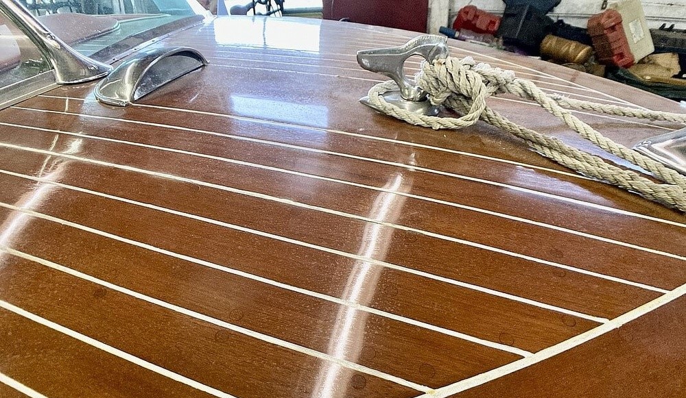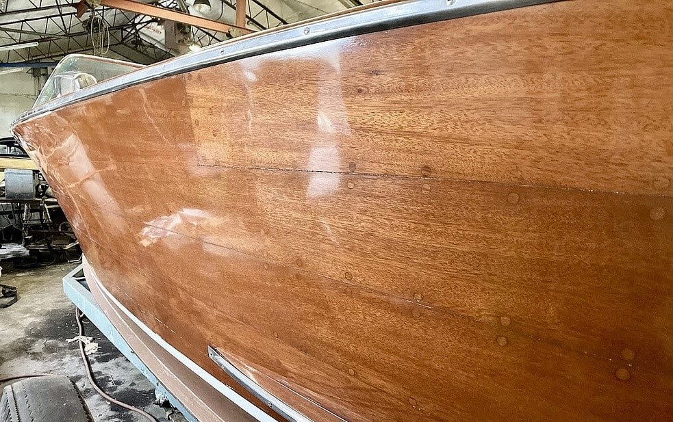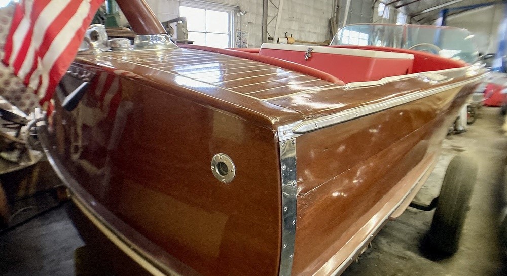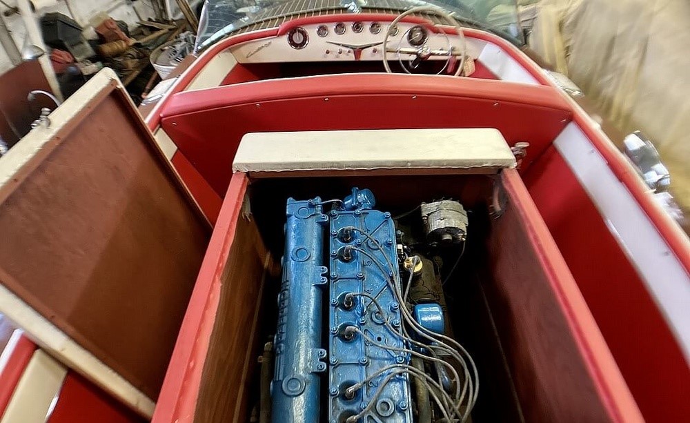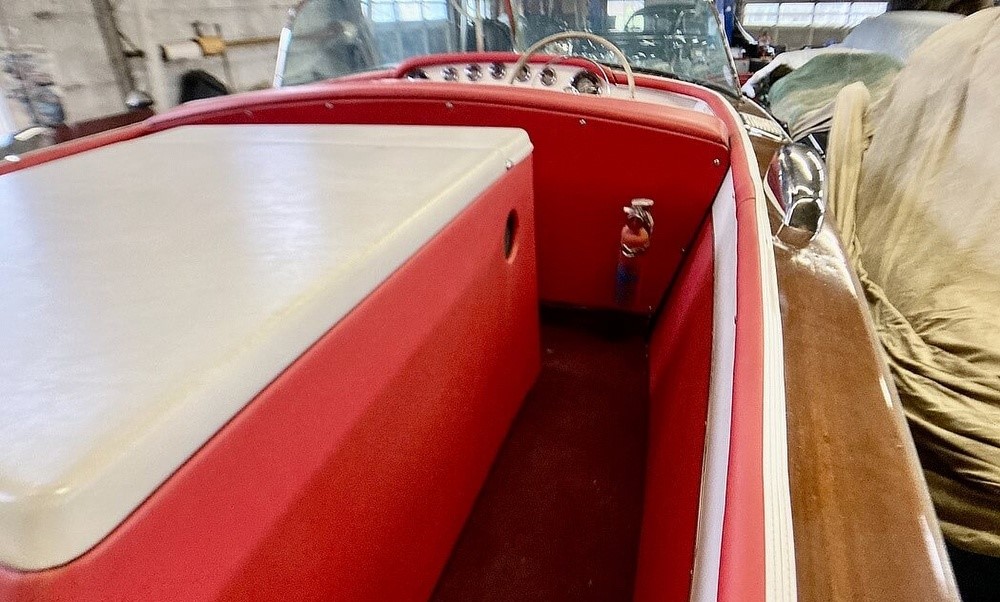 Beautifully restored Resorter with new Nautique floor. Finish is beautiful, however, the engine is not running, but loose. The gas tank needs to be cleaned out. Perfect for repair or engine replacement.