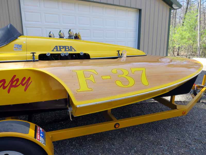 This 1960 Jones conventional hydroplane was recently completed and entirely re-outfitted. Nice clean setup. Reliable Chevy power with a triple Stromberg carburetor configuration. Needs cutlass bearing and prop, but otherwise ready to go with a custom trailer and cockpit cover!