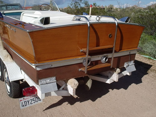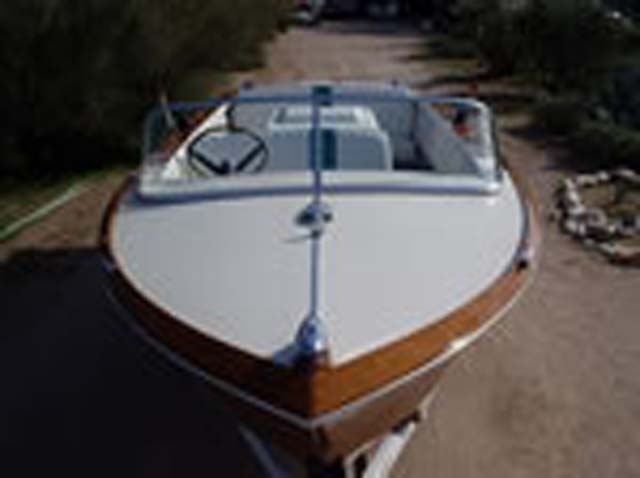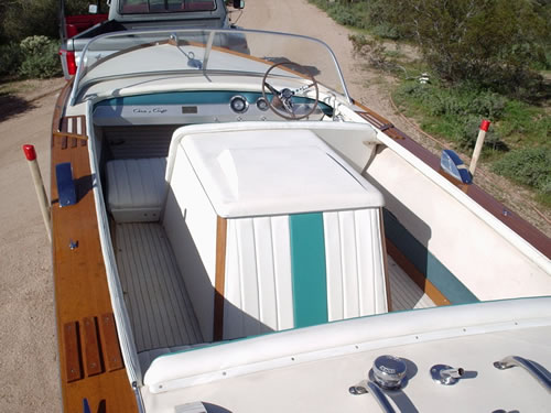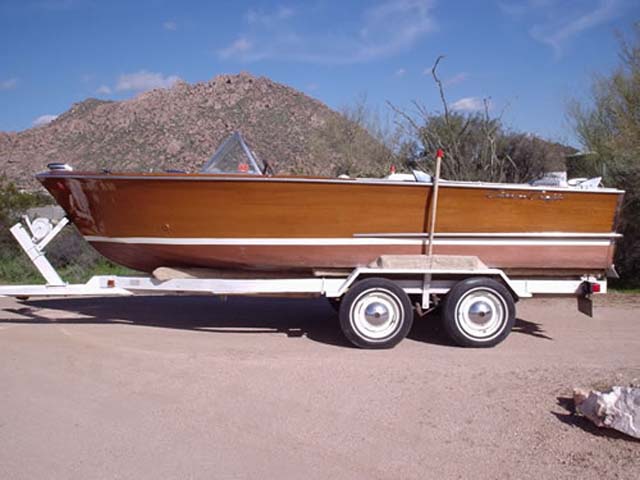 1962 17' Chris Craft Ski Boat "Honey Maple". Original 283 Chris Craft V8 motor and transmission direct drive. 460 hours on motor since new. Interior white with turquoise blue trim. Complete restoration in 1994 - garaged since. Boat is show quality, sporting original boarding ladder. Original Roico tandem axle trailer. No title. More pictures available.