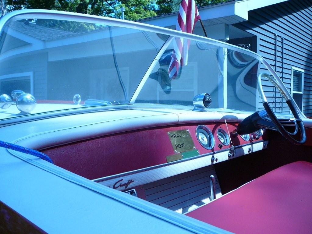 This is a very original 1963 Chris Craft ski boat. It is in excellent condition. The current owner has had the boat for 7 years, during which he had the cushions redone and new upholstery installed. The engine runs strong and is also in great condition. The owner also has the original owner's manual for the boat. The only issues known are two small spots on the stern which were previoulsy damaged by mooring hooks that hit the boat. This is a very popular model of Ski boat as Chris Craft made only 270 in 1963 and 1964.