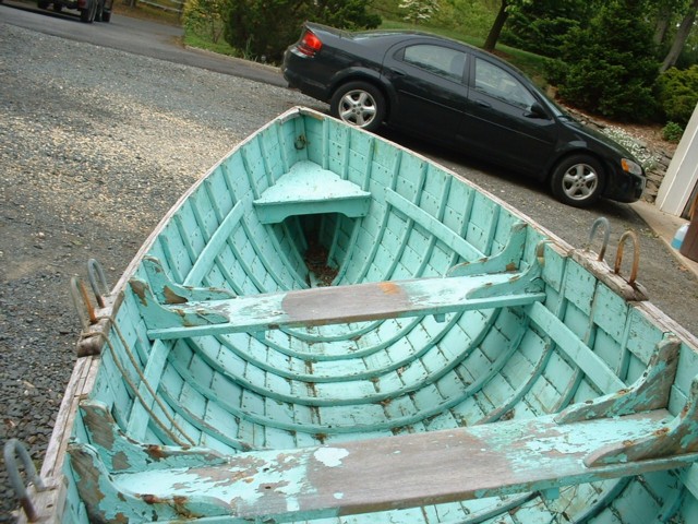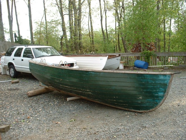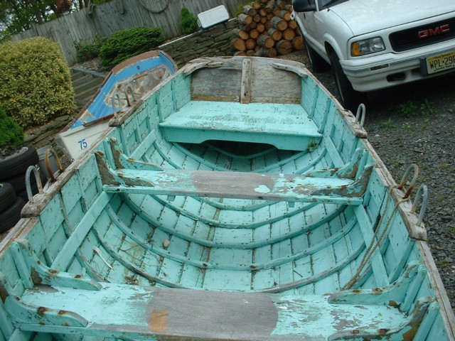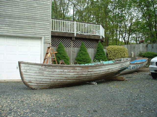 This is the second Van Sant Lifeguard Rowboat the owner purchased at an auction in Atlantic City, New Jersey. It has a cedar hull with mahogany gunnels. This one needs more work to restore.