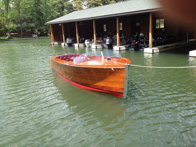 Owner purchased the boat in 2003 from an owner in New Hampshire and brought it to a private lake where it has been on a hoist in a well under cover. It won Best in Class at Hessell in 2003.it was totally reconditioned by a well respected restorer in Michigan in 2012. Has been kept in authentic like new condition including the bottom. The upholstery is new and the hardware, gauges and bottom are all in great shape. Topping this off is no less than 11 coats of varnish.