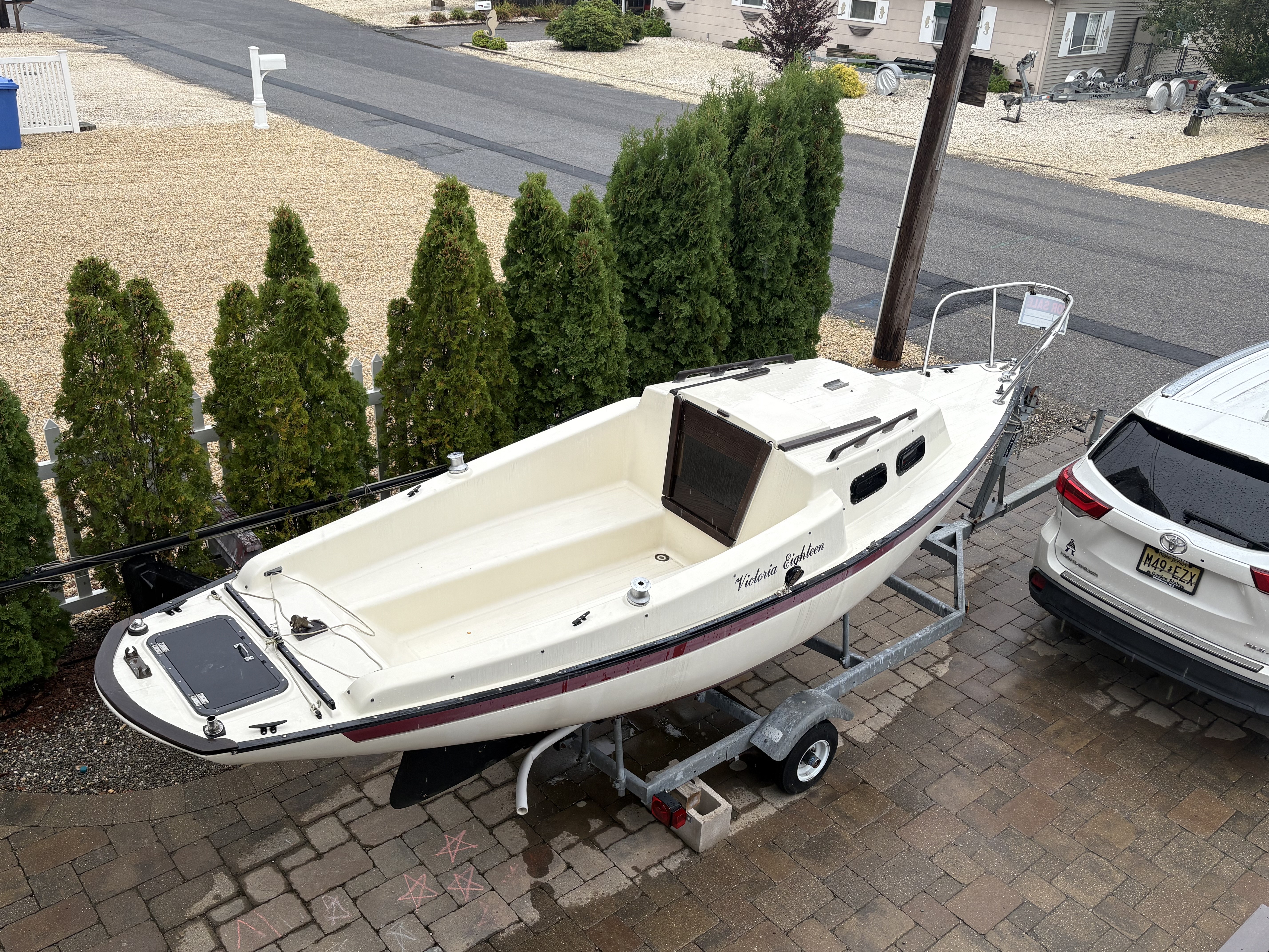 This is an ideal river sailboat because of its 560Lb shoal draft keel which only draws 2 Ft of water and is easily docked. It is a sturdy and safe boat which will takes a fair amount of weather. Sails are old and in useable condition. The air cooled motor is old but starts and runs well.