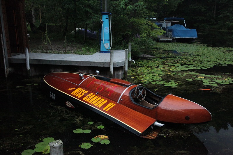 This is a very rare stepped Hydroplane built by Van Patten with Greavette hardware in 1936 in Gravenhurst, Ontario. This boat design by Doug Van Patten encompasses the raceboat design attributes of the 1930's.