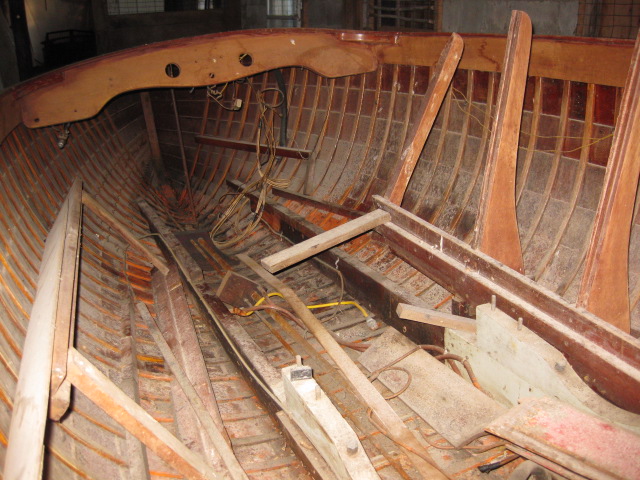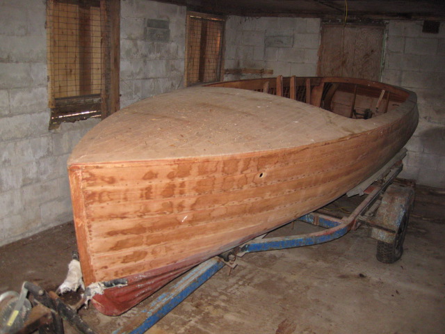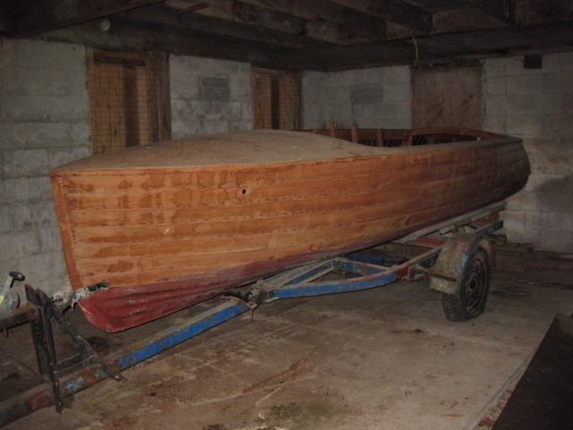 Beautiful little lapstrake mahogany utility- a real nice project boat. Structurally excellent, planking is very good but needs a 2 partial planks. has no floor boards or hardware, but has all the seat framing and upholstered seats, engine box steering wheel/ column. Hardware was pretty simple and should be easy to find.New aluminum fuel tank. Has been inside for 20+ years. Engine was bench tested and ran nicely.