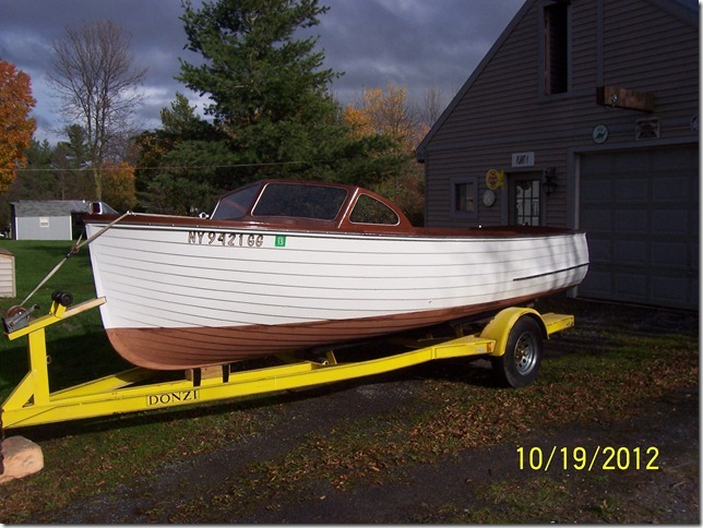 Barn find 3 years ago. Has new front and rear decks, motor box, jump seats, hoses, battery and steering. Recent valve job. All fresh varnish and paint. Engine and transmission good. Boat has no rot. Bottom is perfect. Boat was not used for 50 years prior to removal from storage. Trailer may be available.