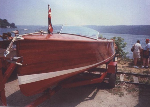 There are approximately 20 other known boats like this. This a very rare Penn Yan. The Hull is made with 1" mahogany strips, looks beautiful. The boat was fully restored in 1997 and used 3 times since and only for shows. The topsides were revarnished in 2000 and not used since. The Chrome is in excellent condidition and the boat will sell with a full mooring cover that is also in excellent condition.