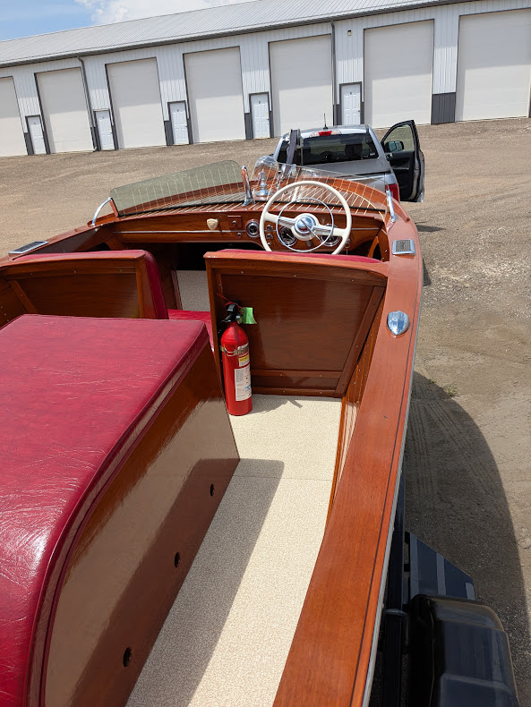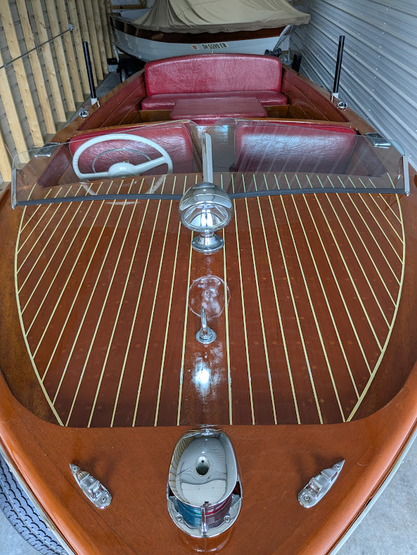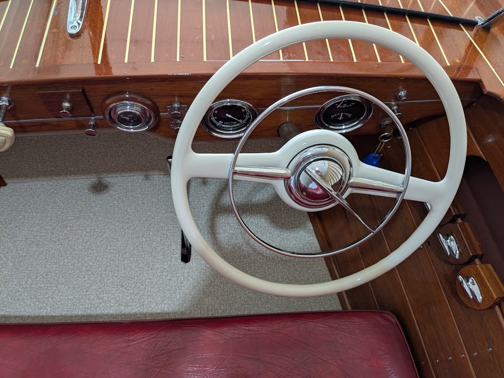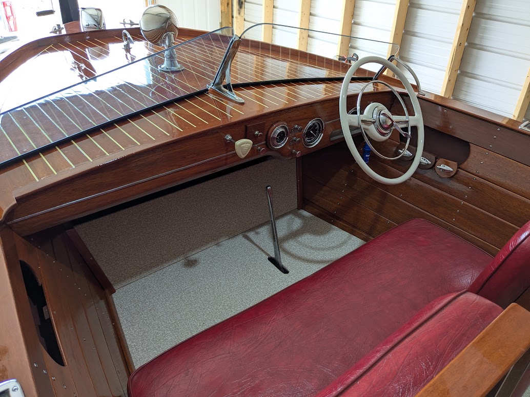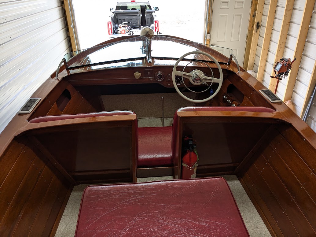 Restoration includes engine rebuild, rewiring 12 v, steam gas tank, replace hull planks as needed and refastened all hull planks, replace bilge pumps, install bilge exhuast, rebuild carb, replaced decks and cover boards.