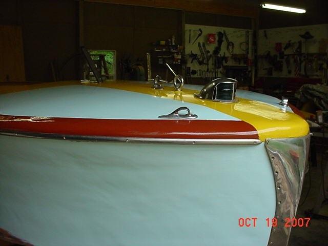 This 18 Foot Riviera is the subject of an extensive restoration and extensive rebuild. The boat is pretty much brand new with a new keel, double bottom, plywood inner and planked outer as original Mahogany sides, West System used in the hull construction, frames where needed, stringers, deck,and dependable modern power. Thru hull in, double hatch to access engine room, twin exhausts, electric gauges, some wiring and plumbing still left to do. The engine has been test run on the floor. Age precludes the owner from finishing this boat. Photos fully documenting the whole project are available. Asking price is $ 8,000 or $ 6000.00 less the Chevy package