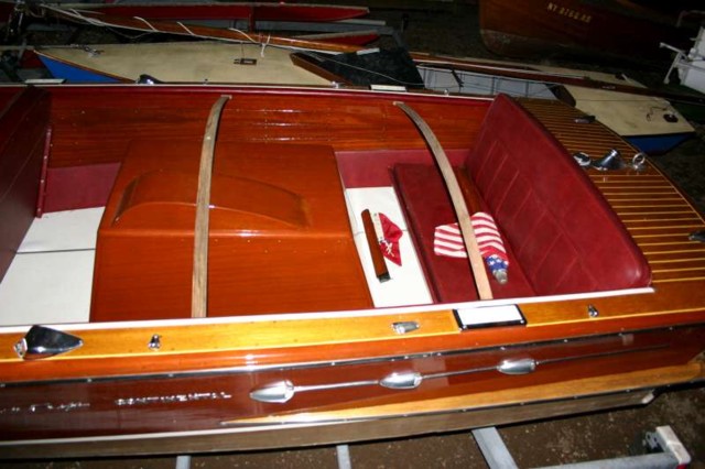 This 18 foot Continental has been nicely restored and is in great condition. Upholstery, gauges, and brightwork are all in nice shape.