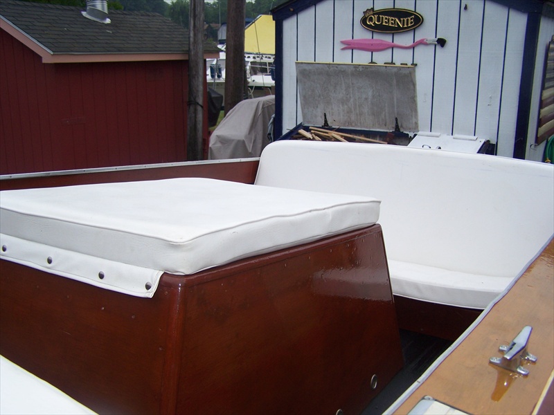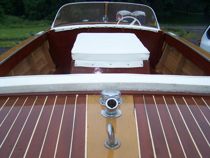 This Holiday just received a full cosmetic restoration and is in very nice shape. 16 coats of varnish. All wood appears to be in solid condition. The cushions were replaced by the previous owner. Carb rebuilt and motor runs very well. New rubber flooring.