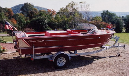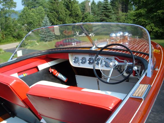 Completely refinished in 1990 and bottom painted with Micron CSC in 2002. Always stored indoors on a trailer, winter & summer. Boat is in very good condition, has been maintained to be essentially original. Frames, deck, topsides, bottom (still seals tight), dash, gauges, wheel, side panels, windshield, 100% complete. Engine upgraded to 350ci V8. New carburetor in 2003. Runs great and starts every time.