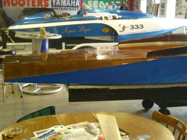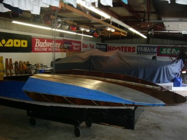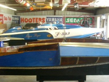 This is the last limited race hull Ted Jones made. It was send to the east coast and was never finished. It is currently being completed by Vance Whiteman, who has built this type of hydroplanes and Chris Craft boats for over 50 years. It can be bought prior to completion or completed per your taste. It is currently being skinned with 6mm Okumee and rigged be 280 spec. Estimated completion in June. Project pictures and my other Ted Jones limited hull photos which can be seen at www.aquaflyerracing.com