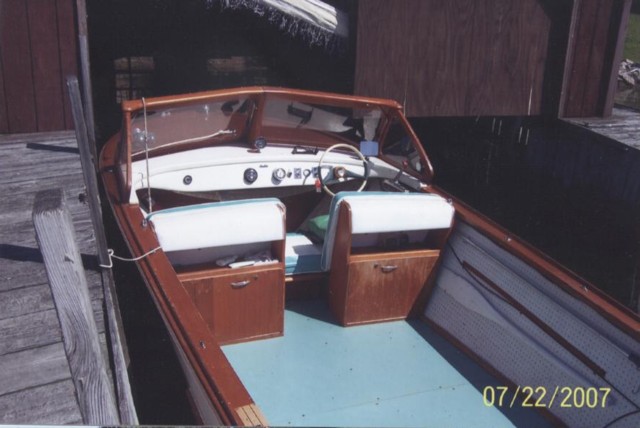 This boat is in the water on the St Lawrence River and is ready to be used. It is all original, including the 75hp Evinrude engine, which still runs but could use a tune up. The boat is structurally sound solid but could use some cosmetic work. This is a great user boat and is priced to sell at $2500. There is no trailer included in the sale.