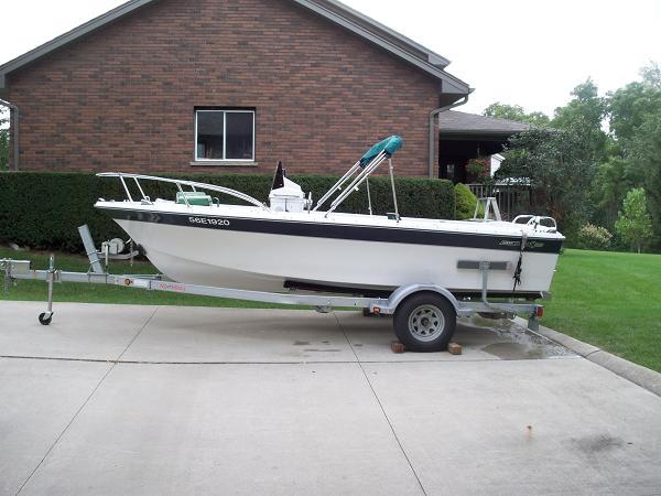Rare classic 1966 18 ft Buehler center console fiberglass jet boat. Restored 360cu in 290 HP Chrysler,coupled to a two stage Hamilton turbine jet pump. Only 21 hrs hrs on the hr meter in five years. About 48 mph top, 30 mph cruise. Owned and pampered several years. Health forces sale.Removable bimini top. New instruments. blower, bilge pump, life jackets, extinguisher, sound system, dual batteries, depth sounder, trailer cover etc etc. This is the rare center console model and it also has the hard to find "steer pac" fins for easy maneuvering (an option at the time). This is a thick strong sturdy stable fiberglass hull. There is no other sound like a Buehler. Huge carrying capacity and is nimble enough to pull several water sports.Comes with a cover and custom trailer with surge brakes. Weighs approx 2200lbs. Built in swim ladder on the stern plus a great sound system. Many safety items included. Excellent for fishing with its flush mounted stainless rod holders.