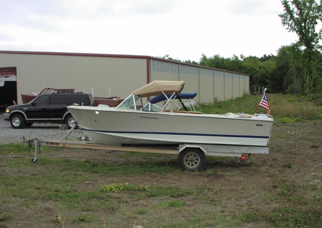 This boat was completely restored a few years back. Powered by a Chrysler 318 Marine 225 hp engine, it features include an anchor, swim ladder, convertible top, a depthfinder and trailer.