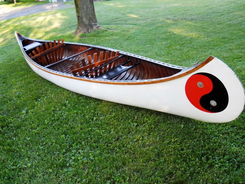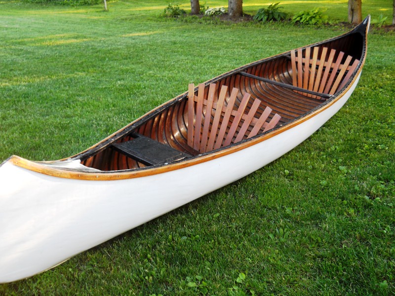 This is an early "Lake Canoe" built by Joe Henry. It is in very nice condition and was restored by her original owner many years ago and has remained unused since. She is complete with original paddles and seat backs. It is being sold with no reserve and will be a pleasure for the new owner to paddle!