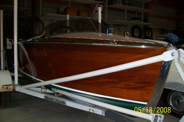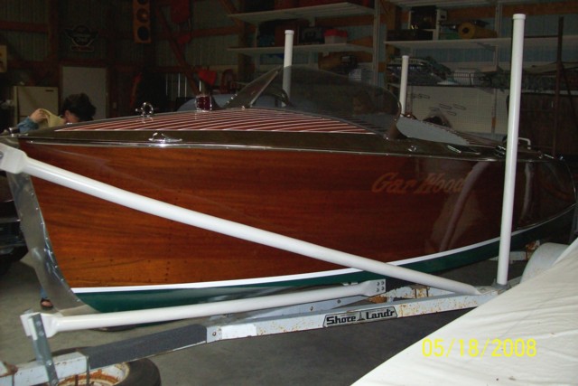 This boat is ready for the water. This Gar Wood has the original gauges and a lovely interior. The wood is all great with a relatively new restoration. The engine is a repowered Marine Power 4 cylinder and has less than 10 hours on it since installed. Hardware is very clean, finish is good and interior has no cuts or tears. This boat should be enjoyed this year without any cost investment.