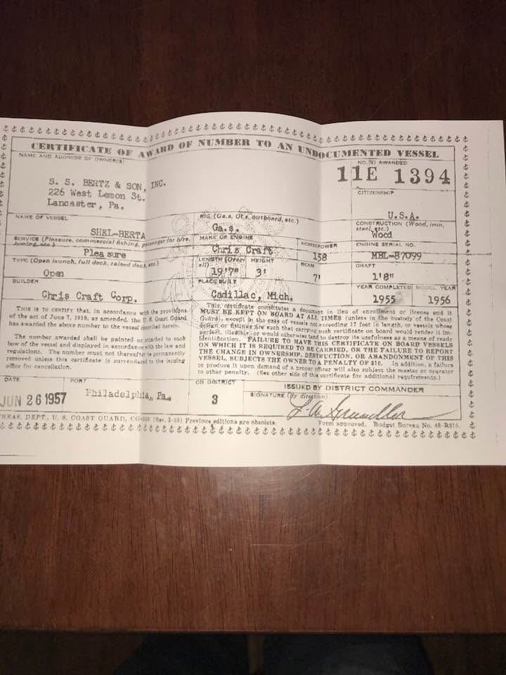 I am the third owner. Sat in a barn for 31 years. Two boards were bad on the bottom; boat is at White Hall Marina in NY. Bottom is stripped and have all the old boards for pattern.