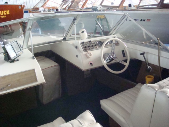 This runabout style Chris Craft has been used sparingly the last three years following a complete tune up including new belts, hoses, & impeller. Fuel pump rebuilt and fuel cell cleaned. Engine runs great. New carpet throughout, seats are in very good cond. Fiberglass freshly polished. Hull #2089; the 89th Lancer built that year. A very nice example of a clasic early 70's styled Chris Craft.