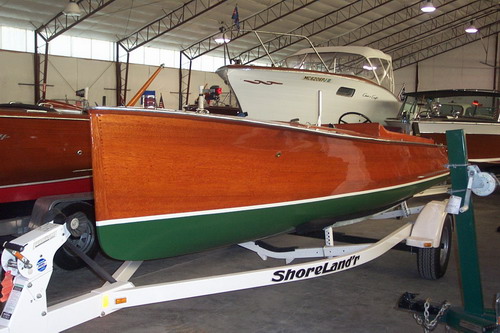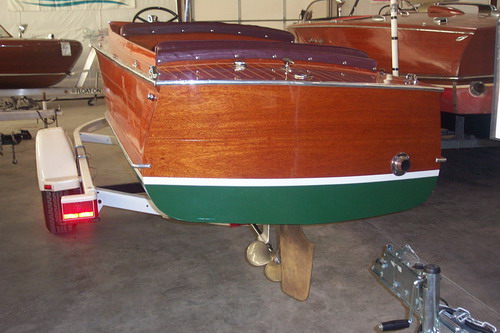 Beautiful example of a fine Canadian launch. This boat has been professionally restored from the bottom up and is varnished inside and out with a green bottom. The hatches, dashboard, seats, 6 ribs, 12 planks, gauges, steering wheel and hardware are original, but everything else has been replaced. It is powered by a 45hp Continental Engine that is not the original, but exactly the same. Boat comes complete with a cover and 2003 Shorelander trailer.