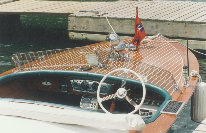 The owner has had this boat since 1987. The pieces are original, with a banjo wheel steering. Transmission was rebuilt in 2012. It is a three cockpit boat, the last bench is reversed to watch skiing person. Well maintained every year.