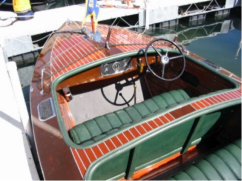 John Hacker produced this very unique size of Triple Cockpit. It offers a surprising amount of of cockpit room for it's size and is easy to handle and trailer. it also has the Legendary Hacker ride and performance through water. the original Chrysler Crown was removed for an updated late series M-47 motor which would offer more horsepower. The boat was fully restored in the Winter of 2002 and among other items had a fiberglass bottom professionally installed. The boat is now ready to go and and be enjoyed for the upcoming boating season.