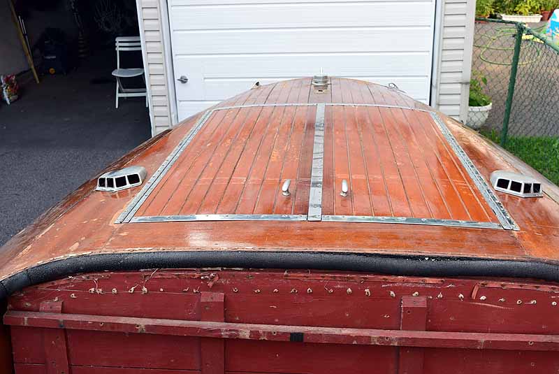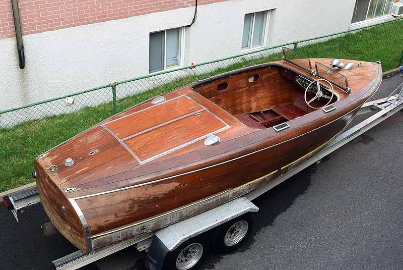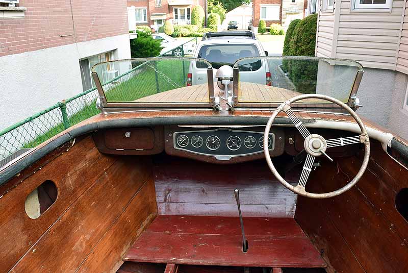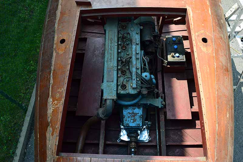 Just when you think they have all been found! This Chris Craft Barrelback is totally barn-fresh. Recently found in a barn where she has been sitting since the mid-1970's. Every piece of wood is original except for the lower transom plank. The bottom is in incredible condition - you could not fit a dime between the plank seams! Engine was in running condition and boat was in regular use when put into storage. The hull bears ID#48609 and engine is #M-10540. Hiding underneath her current waterline and bottom paint is an original green bootstripe and copper bronze bottom. Some remnants of the original upholstery (red) are present in the side pockets. Equipped with folding, Bugatti-style windscreen. Seats, gas cap, and stern pole are missing, but the boat is totally complete otherwise. This is an extremely rare find and would be a perfect restoration candidate, or preserve her current condition.
