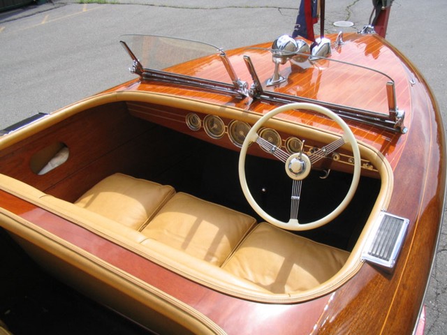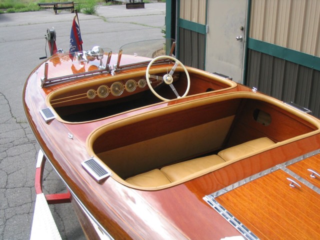 This is a truly exceptional boat which has seen very little use since the mid 90's and has been very well maintained. The boat has just come through a fresh restoration including a new west System bottom. The boat has gorgeous pigskin leather upholstrey which is correct for that vintage. As well the chrome is in excellent shape and the gauges ahave been re-done by Pat Powell. The decks seams are orange which is actually correct for that year as mentioned in the 1940 model shop memo #632. Later they would discontinue the orange and go with the more traditional white as it apparently did not go over well with the buying public. The engine has been detailed and everything in this boat is corrcet and what you would expect from a Show Condition Barrel Back Chris Craft. Between the years of 1939 and 1942 there were only 433 of these Barrel Backs produced.