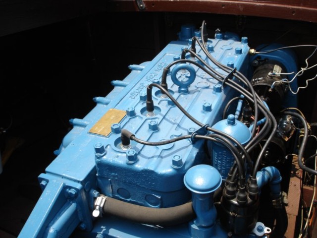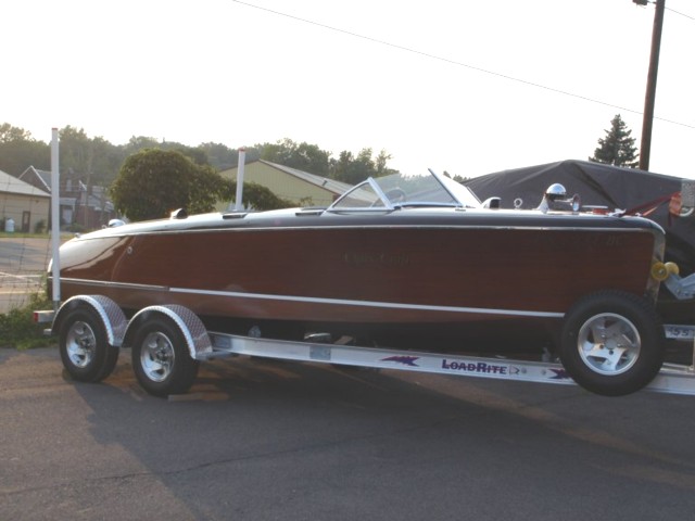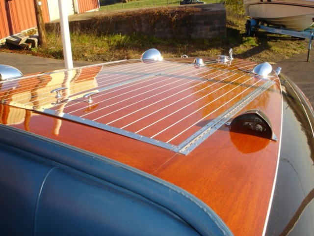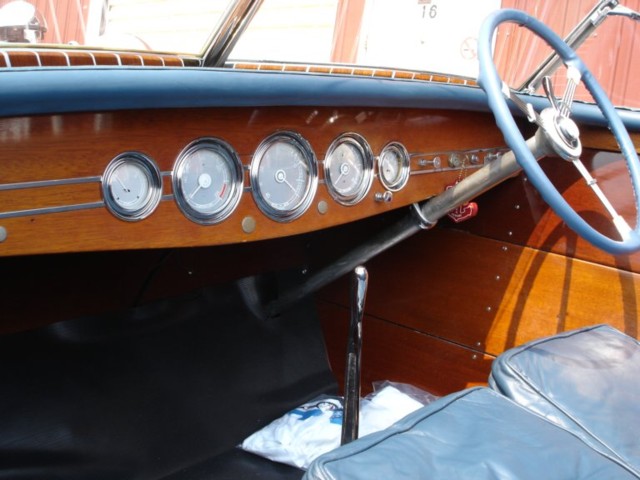 This boat was delivered by rail to Harvey's Lake Pennsylvania and it has resided there all of it's life. Current owner has had the boat since 1993 and it is a solid and consistent show winner. Chrome has been redone, new battery and electronic ignition. The boat is finished in Wedgewood Connelly Blue leather. The engine was rebuilt in 2006 by Drake engines and the gauges have been redone by Pat Powell. Every cylinder reads a solid 80 psi. The bottom was repainted in 2007 and has a very dry tight West system bottom. 15 Coats of varnish, leathercovered steering wheel, new black ribbed flooring, new tach cable, rebuilt engine, new teleflex accelerator system. This boat is in exceptionally good condition and is ready for a new captain. The engine has been rebuilt and is in excellent condition.