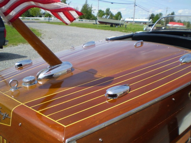 Hull CP-19-084 of 215 built in 1955. Natural blond king plank and beautiful mahogany make this one of the most sought after models that Chris Craft made in 1955. All original and very nicely kept, new upholstery, very fresh varnish, new bottom paint. A "turn-key" boat that has appeared annually in the Alex Bay boat show. A real nice family boat. Original engine, original top, many other original parts.