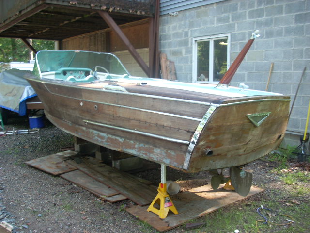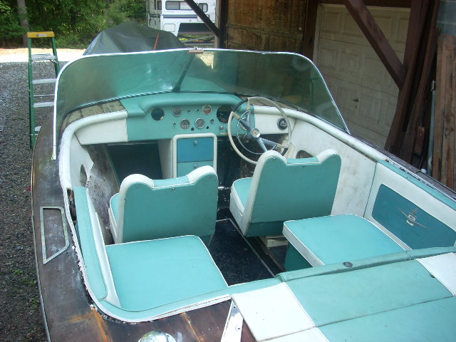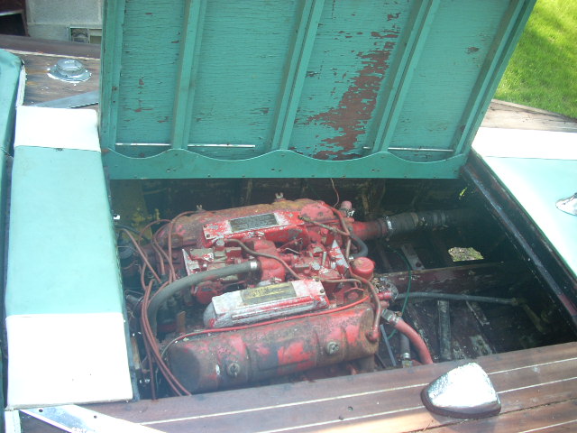 Gray Marine 225hp V8 with a V-drive. The engine turns over. Has some new interior parts. Overall, the boat is very complete. There is a fair amount of rot in the stern. Sold as is.