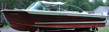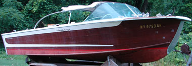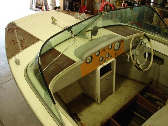1960 Century Resorter. Rare "aircraft carrier style" bow deck. This is a barn find, wood, project boat. Needs complete restoration Hull is solid. Deck needs wood repair in a few areas. All parts and pieces present and accounted for.