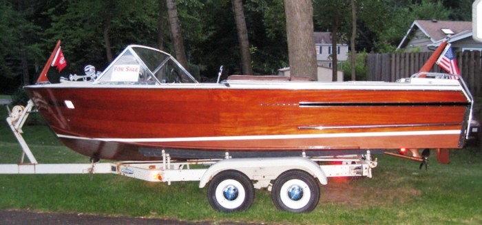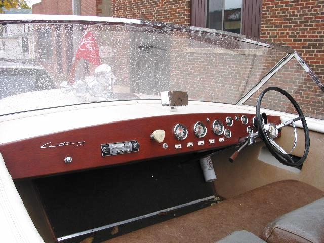 I purchased this boat Fall of 2004 as a project boat. Prior to that, it had been in controlled storage for 17 years. Partially disassembled last winter with reconstruction over the summer. All chrome removed, polished and refitted. New "Century-correct" vinyl applied to front deck. Fiberglass deck removed and completely refinished. The framework is in A-1 condition. I replaced a transom crown board with a small amount of dry rot and refinished the entire transom. The interior vinyl has been replaced. Rubber step-pads are new and wooden ladder steps have been replaced with new teak. Previous owner did swap out the dashboard with a very nice mahogany replacement. I still have the original dashboard with instrumentation, however. The engine ran great the few times it was out this Fall although This boat is very solid all the way around. Additional pictures available on request.