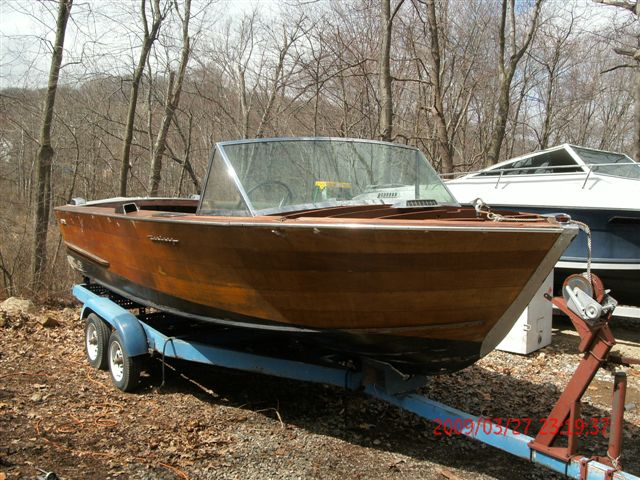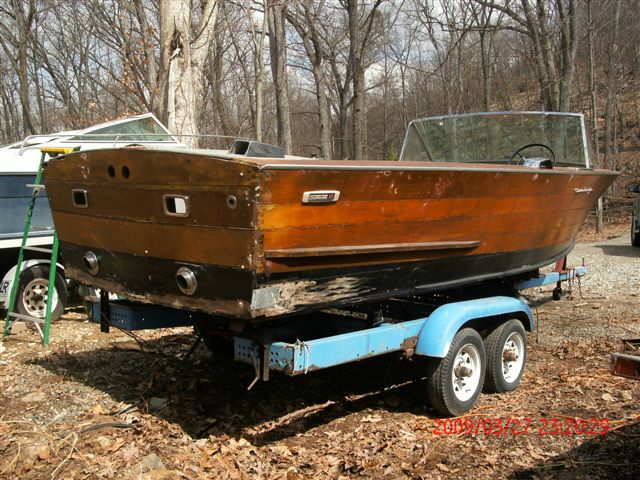 Hull card indicates it came with a Chrysler 426. Boat came with sliding top, 1 clip is missing, lower mounts on frame are there. Missing prop, shaft & rudder otherwise hardware is complete including bronze exhaust tips & vents. Top sides of hull are very solid except for rear port side. Needs transom & transom structure. Some planks on bottom need to be replaced. Lower part of stern where meets keel needs to be replaced. Front deck cover is missing. Front seat and lower section of rear seat are missing. Gauges, dash, steering wheel and shifter seem to be in good condition. Side panels were also cut for an unknown reason. Trailer is included. Tires and rims are good, trailer is roadworthy. Boat came from New York State and we do not have the previous registration. This is a great restoration project boat that can be repaired rather than rebuilt.