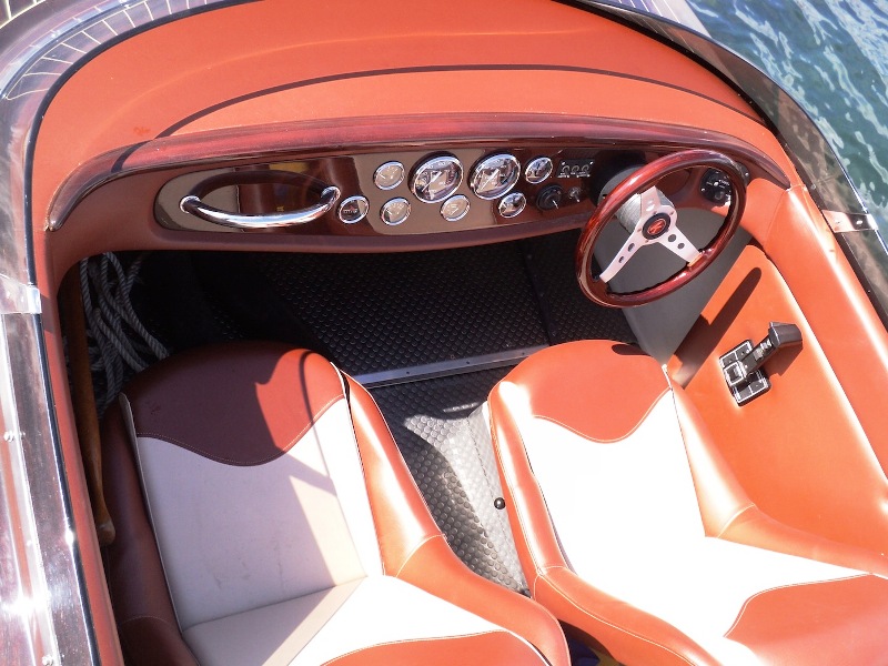 Built by Kazulin boats in 1989 and recently refinished by the factory. This Continental model is the roomy 5-seater that cruisers comfortably at 46mph but tops out at 60mph. Excellent rough water boat. Fiberglass hull, African mahogany decks. Powered by a 350 Magnum Mercury engine with a silent choice exhaust. Very clean and has a new beige and delta brown interior. Black hull with white bottom, varnished decks, and copper antifouling below the waterline. Very nice, turn key package!