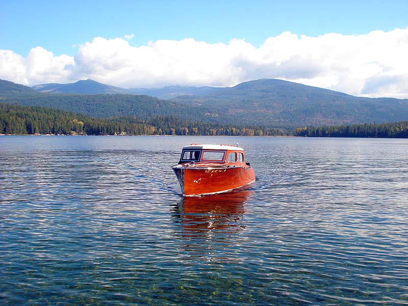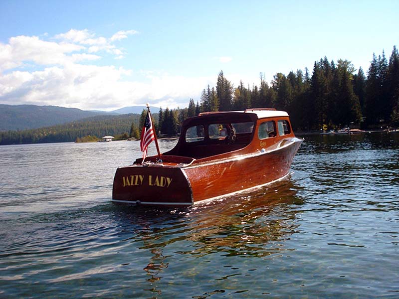 Fully restored boat with replaced traditional century bottom. All of the side planks as well as the decks and covering boards were replaced with beautiful Philippine mahogany. Some of the side frames also had to be replaced. The wood from the sedan top, seats and ceiling boards were in excellent condition and were saved. The gauges were restored by Mark Clauson. It has a gorgeous, original banjo steering wheel. The interior of the sedan is beautiful. It received 96 ½ points at the 2012 Tahoe Concourse. As you now, that is the most critically judged show in the United States. It received a first place as well as the Best Century award. Six weeks later we took her to the ACBS International at Table Rock, Mo. And it received 95 points and the Best Century award.