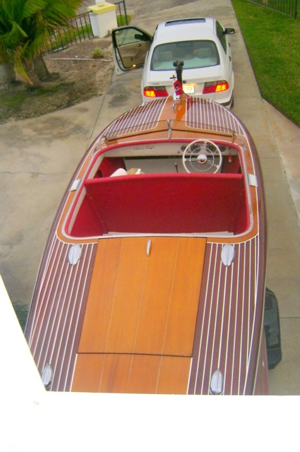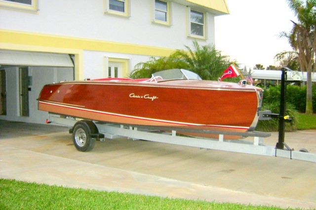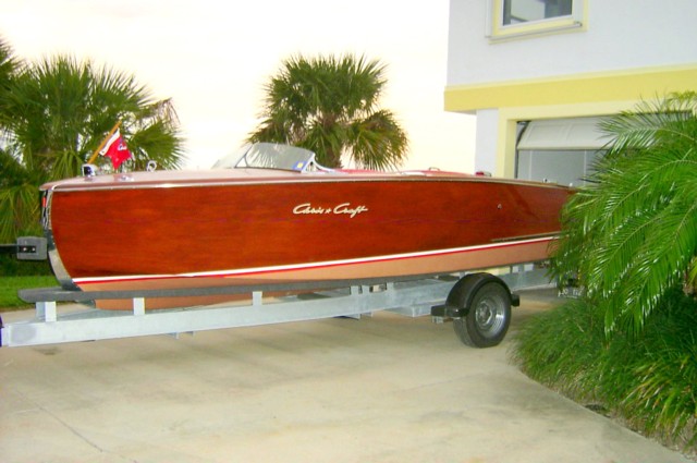 1950 Chris Craft Riviera, Just Refinished July 2006. New Interior, many Chrome parts replated, Remanufactured Trailer, Hull Just stripped and 14 coats varnish, bilge painted, top side 4 coats varnish, comes with 4.3L EFI Mercruiser installed and original Chris Craft M engine in good running order and all original parts to reinstall M engine for showing.